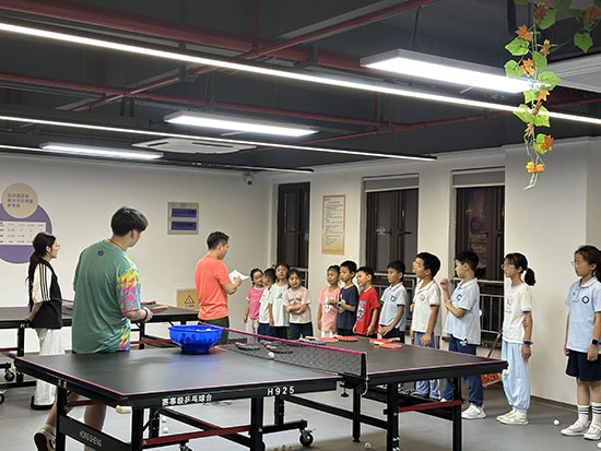 近日,為豐富青少年課余生活,培養運動興趣,杭州市濱江區浦沿分院浦聯社區教學點聯合轄區內炬浪運動乒乓球館,面向6- 12歲兒童開展為期一周的公益乒乓球課。活動以寓教于樂的形式,讓孩子們在揮拍擊球間感受運動魅力。