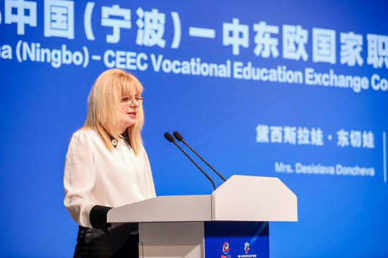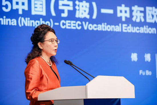 中國(guó)教育國(guó)際交流協(xié)會(huì)副秘書(shū)長(zhǎng)傅博,中國(guó)—中東歐國(guó)家合作秘書(shū)處辦公室副主任姜超,浙江省教育廳國(guó)際合作與交流處處長(zhǎng)藍(lán)晶晶,寧波市教育局副局長(zhǎng)陳金輝,寧波博洋控股集團(tuán)有限公司黨委副書(shū)記張英,匈牙利教育署國(guó)家獎(jiǎng)學(xué)金司司長(zhǎng)戴維德妮·貝爾卡·埃梅塞,保中工業(yè)發(fā)展商會(huì)主席黛西斯拉娃·東切娃以及來(lái)自中國(guó)與中東歐國(guó)家的教育行政部門(mén)、職業(yè)院校、行業(yè)企業(yè)及國(guó)際組織代表200余人出席。