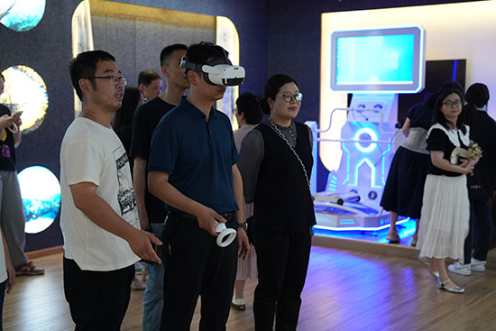 隨后,學員們走進學生實訓場地。在護理實訓場地,現場觀摩了學生們進行的護理操作練習。先進的實訓設施、嚴謹的教學態度以及學生專注的精神面貌,給每一位參觀者留下了深刻印象。在旅游實訓中心,大家觀摩了茶藝、黨建VR和模擬滑雪機體驗展示等,同時,還品嘗了由學生們親手泡制的香茗。這一環節,不僅讓學員們體驗到學校對學生傳統文化素養的培養,也進一步感受到學校在推動傳統文化傳承方面的努力與成效。