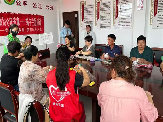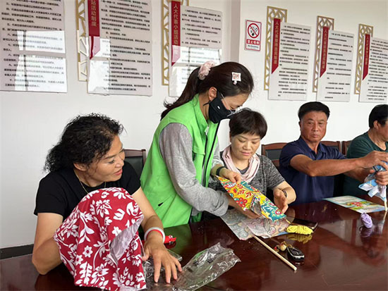 在動手制作環節,大家熱情高漲。先將棉布裁剪成合適的形狀,接著填充艾草和PP棉,然后細心縫合。老人們雖然動作稍顯緩慢,但每一個步驟都做得一絲不茍。遇到困難時,相互交流、互相幫助,現場氛圍十分融洽。李阿姨笑著說:“平時在家閑著沒事,這次能親手制作養生錘,既有趣又實用,還能和老伙計們一起聊聊天,太開心了!”