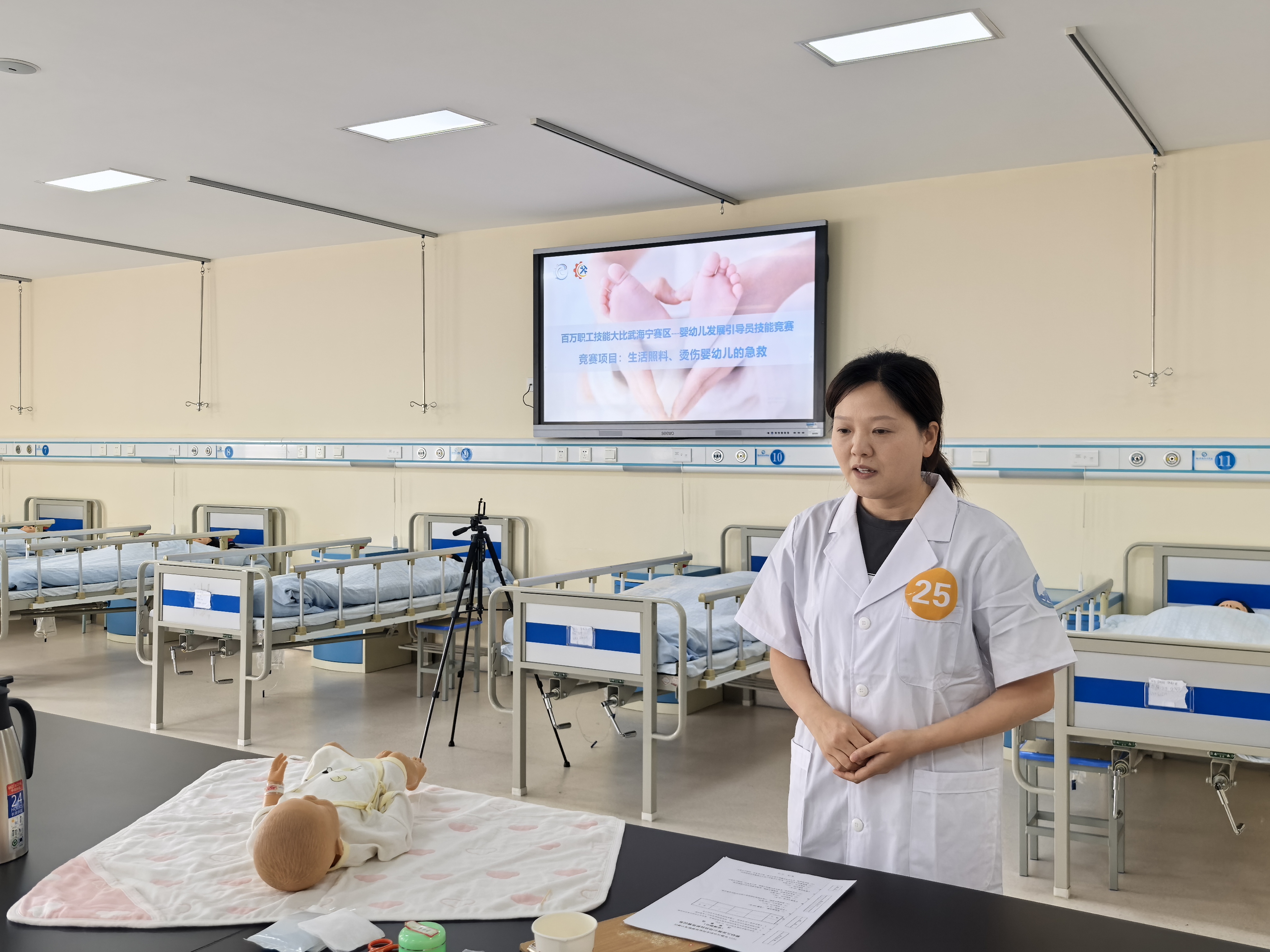 5月24日,由海寧市人力社保局、市總工會、市教育局、市衛健局主辦,海寧衛生學校承辦的2025年嘉興市職業技能競賽暨百萬職工技能大比武海寧賽區嬰幼兒發展引導員(育嬰員)技能競賽,在海寧衛生學校順利舉行并圓滿落幕。本次競賽以“弘揚工匠精神,打造高素養勞動者隊伍”為目標,吸引了全市嬰幼兒護理一線的49名工作人員同場競技,共同展現育嬰行業的專業風采。