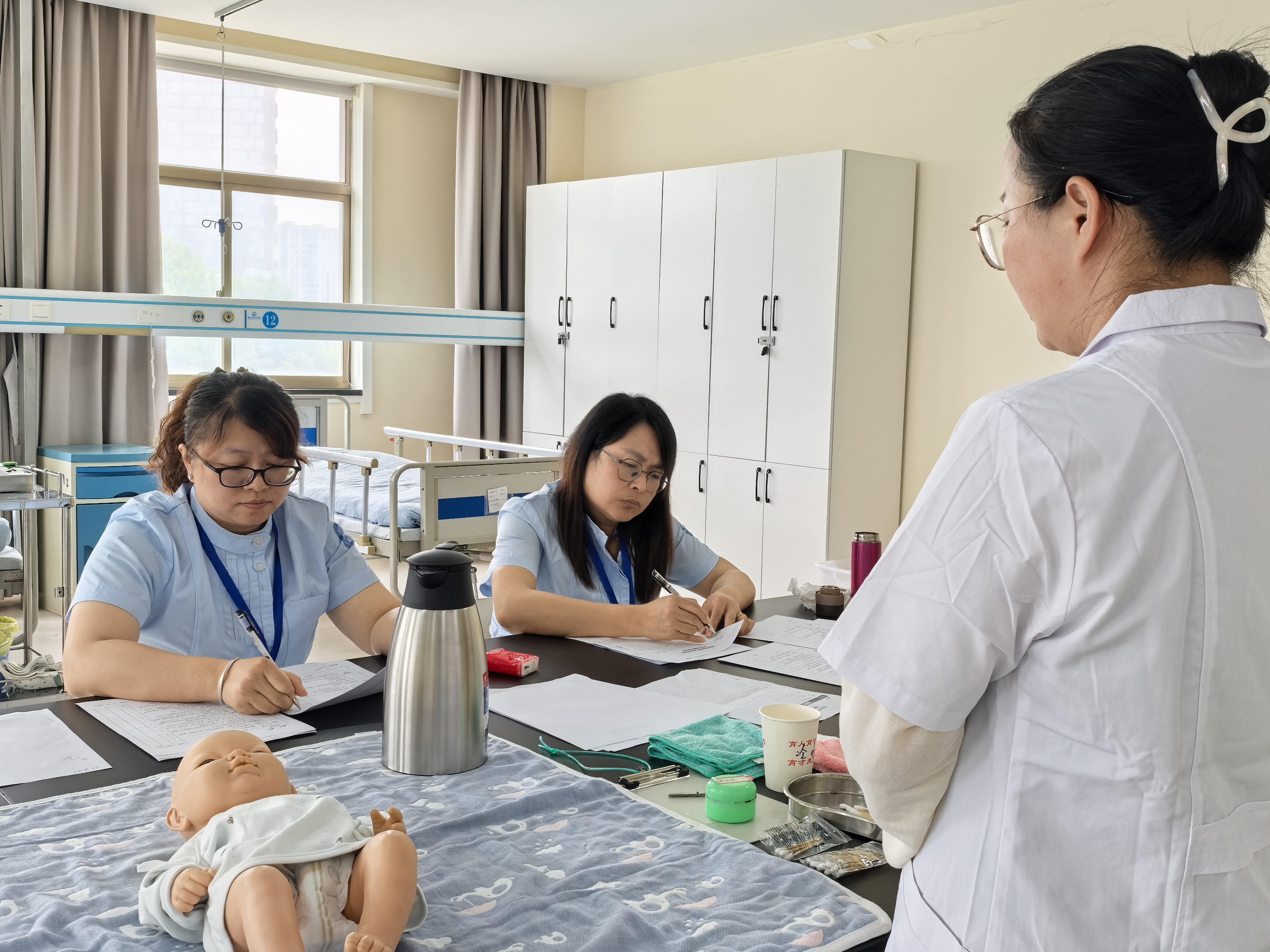 競賽采用“理論考核+實操比拼”的雙重考核模式,全面檢驗選手的專業素養。在理論環節,選手們專注作答,展現出扎實的育嬰知識儲備,涵蓋嬰幼兒生心發育、心理發展、護理保健基礎知識及法律法規等等核心領域。