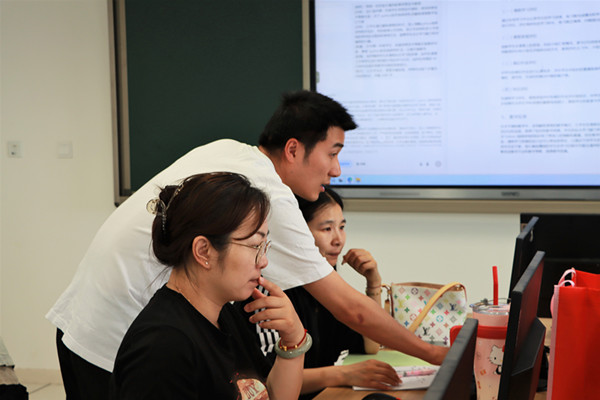在實操環節,蔡老師以“課堂點名系統”的設計為例,展示了如何利用HTML和JavaScript技術,實現隨機點名、名單導入等功能。參訓教師們在指導下,親身體驗了AI工具在教學中的應用。例如,利用AI導航網站探索教學資源,設計面向高一年級學生的Python語言選擇結構翻轉課堂教學方案。在指導教師實踐操作的過程中蔡老師有針對性的提出,語言精準表達的重要性,強調檢索六要素。此外,蔡老師還分享了如何利用AI工具進行數據分析和處理,如學員信息表的整理、成績數據的統計等,讓青年教師們看到了AI技術在教務管理中的巨大潛力。