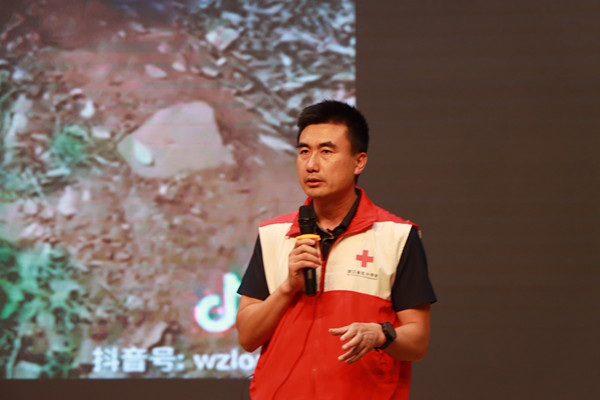 在運動損傷的類型講解中,陳彬詳細介紹了扭傷、拉傷、骨折等常見損傷,并現場展示了如何正確判斷損傷類型和采取初步的急救措施。他一邊講解,一邊用手勢比劃,生動形象地讓學生們理解了復雜醫學知識。