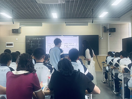 數學組蔣倩文展現了原題及學生練習的直觀數據,正確率、解題過程與方法清晰重現。通過多維展示、對比展示,找到學生錯誤原因,再與典型作答對比,完成作業(yè)講評,課堂知識得到有效的鞏固。