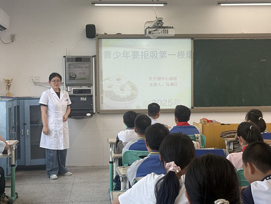 在世界無煙日來臨之際,5月29日,安吉社區教育學院天子湖分院積極行動,特別邀請了天子湖中心衛生院的馬滿紅醫生,為高禹小學502班的學生帶來了一場別開生面的“青少年要拒吸第一根煙”健康知識講座。?