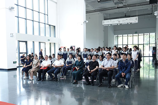 平湖市陸維釗書畫院院長馬抱瑾,平湖市政協農業農村委副主任、民進平湖市委會副主任魯躍華,平湖市教育局黨委委員、副局長張偉,平湖市職業中專黨委書記姚雁,南市社區黨委書記鄔振東,平湖市職業中專副校長郝紅花,陸維釗書畫院藝術展覽部主任胡平,平湖市職業中專職業中專黨委委員、精藝支部書記湯芬霞出席,時尚藝術系師生代表參加。本次活動由時尚藝術系主任吳娟主持。