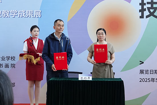 簽約儀式后,出席領導為展覽剪彩,禮花與掌聲交織,宣告這場職教與藝術的對話正式啟幕。