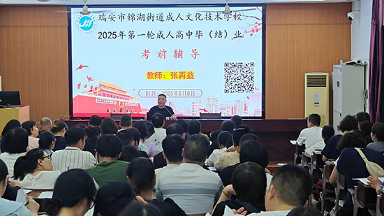 6月8日晚,瑞安市錦湖社區學校在階梯教室成功舉辦25級首輪成人高中學歷提升培訓,共吸引179名來自各行各業的學員參與。本次培訓由瑞安市教育局統籌安排,錦湖社區學校牽頭,聯合東山社區學校、玉海街道成人文化技術學校等共同開展。培訓由錦湖社區學校副校長錢小波主持。