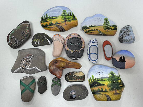 近日,安吉縣社區教育學院昌碩分院(即昌碩成校)石畫藝術培訓課程歷經10次精心編排的教學后圓滿收官,為30余名學員帶來了一場充滿創意與溫情的藝術之旅。此次課程以“由淺入深、循序漸進”為原則,從基礎的石面清潔、構圖技巧入門,逐步過渡到色彩搭配、立體層次塑造等進階技法,帶領學員們在形態各異的石頭上勾勒出一幅幅靈動畫作。