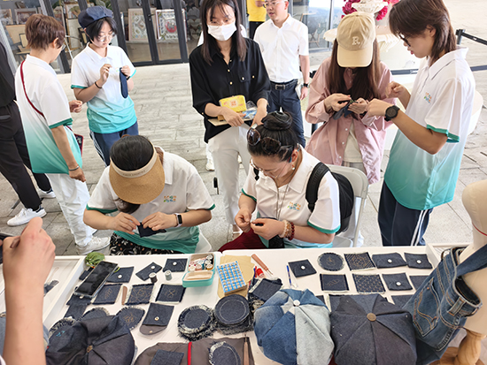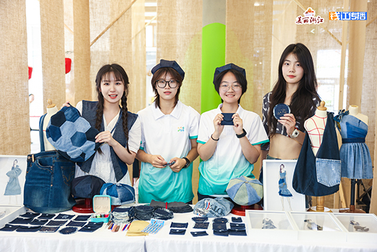 破損牛仔外套改造成機能風(fēng)馬甲、褲腿拼接布料制成個性裙裝、破洞處設(shè)計可拆卸補丁……在“穿?綠色時尚”展區(qū),該校綠藝社的學(xué)生以廢舊牛仔為核心材料,傳遞“修復(fù)代替丟棄”的時尚理念,將廢舊牛仔布料匠心重塑為潮流成衣、個性手作等多元作品,讓廢舊資源在學(xué)生手中實現(xiàn)“藝術(shù)重生”。在學(xué)生的巧手中,牛仔碎布制作成了個性帽飾、創(chuàng)意手包,牛仔褲口袋改造為零錢包,邊角料制成印有“無廢青春”標(biāo)語的實用杯墊。現(xiàn)場,綠藝社成員還指導(dǎo)參與活動的市民用縫紉機將舊牛仔褲改造成牛仔耳機包,牛仔流蘇杯墊等,并體驗個性刺繡等 DIY 選項,活動完成了50余件成品,較好地向市民傳遞了綠色理念。