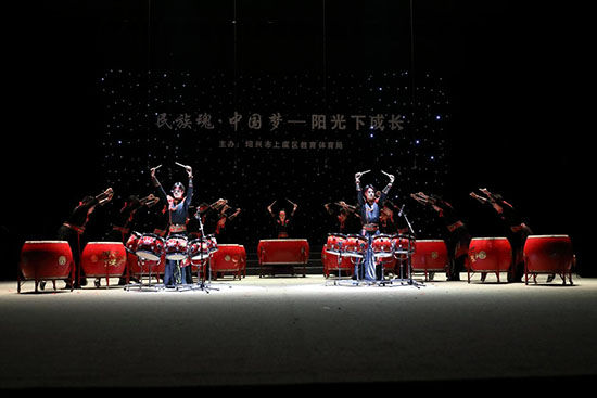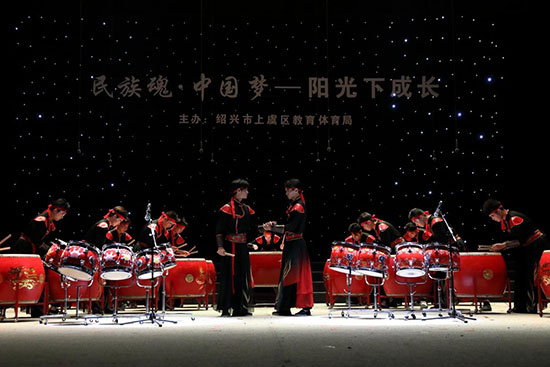 在同學們的鼓棒翻飛間,《舜會百官》的雄渾樂章在曹娥江畔震撼奏響。青春學子以鼓為筆,時而低沉厚重,訴說虞舜千年故事,時而激昂澎湃,展現娥江奮進之勢……在同學們充滿激情的演奏中,上虞這座青春之城仿佛化身為意氣風發的少年,正昂首闊步邁向未來。