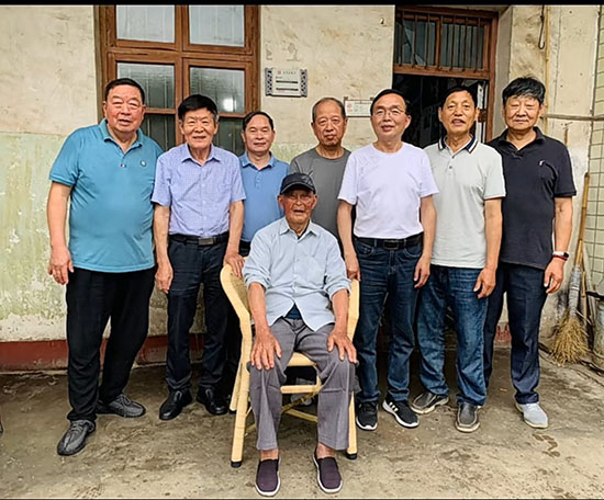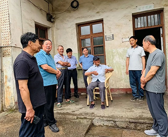 一行人帶著禮品走進姚長明家,房間布置簡樸。姚長明見這么多人來探望自己很高興,精神矍鑠,十分健談。一打開話匣子,老人記憶猶新,種種往事歷歷在目。1951年3月參加工作,先后在視北鄉、視南公社、東三公社、楓橋蠶種場等處就職。“辦法總比困難多,無論身在哪里,我都想把當地的發展搞好。”姚長明說,回顧自己的一生,令他最驕傲的莫過于帶領社員建起了“東三農機廠”,也就是“諸暨市汽車制動配件廠”的前身。“當時生活生產艱難,我想著不能再這樣落后下去了,要把經濟搞起來,讓群眾富起來。” 20世紀70年代初,已在東三公社任職幾年的姚長明說干就干,召集了公社干部、生產隊長、財稅人員等40多人到余姚學習取經,買回四臺儀表車床,又請來師傅,把原東三公社加工廠變更為“東三農機廠”,從加工茶葉、修理腳踏打稻機的綜合加工廠,轉型為生產汽車五金小配件的農機廠。1979年姚長明退休后,仍持續關注東三的發展。諸暨市汽車制動配件廠便成了帶動汽配行業發展的培訓學校,每年都有一批技術骨干和銷售人才走出去創業,為楓橋鎮的塊狀經濟發展奠定了堅實基礎。老人沉浸在自己70多年的工作歷程中,面對提問,清晰解答。據他兒子說:昨天還上山去砍毛竹呢。一行人現場為老人書寫大大的“壽”字給他,老人欣然接受,并與大家合影留念。