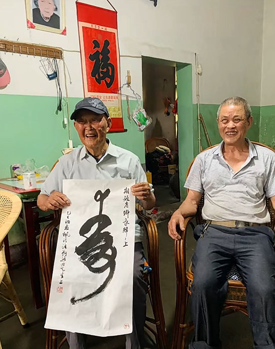 5月20日上午,諸暨市楓橋鎮陳家社區老蓮書畫社和楓江書畫社的部分社員在陳均明與魏仁虎兩位社長的帶領下來到諸暨市店口鎮桃園村,專程拜訪已109歲高齡的老鄉長姚長明先生。