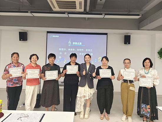此次結(jié)營(yíng)儀式不僅為山二社區(qū)老年學(xué)堂開(kāi)展的首期老年合唱班畫(huà)上了圓滿的句號(hào),更讓學(xué)員們感受到了社區(qū)的溫暖和關(guān)懷。在這里,他們不僅學(xué)到了音樂(lè)知識(shí),還結(jié)交了許多志同道合的朋友,豐富了晚年生活。相信在未來(lái)的日子里,他們會(huì)繼續(xù)用歌聲傳遞快樂(lè),用熱情擁抱生活,共同書(shū)寫(xiě)社區(qū)文化生活的美好篇章。(張浣女)