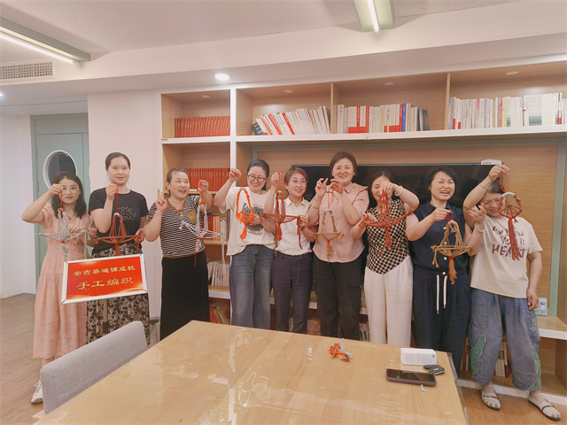 活動(dòng)現(xiàn)場(chǎng),方玲老師化身耐心的引路人,她手持材料,從基礎(chǔ)繩結(jié)教起,動(dòng)作輕柔且嫻熟。“先打一個(gè)活結(jié),將繩子繞圈后從中間穿過(guò),拉緊時(shí)注意力度均勻。”方玲老師一邊細(xì)致講解,一邊進(jìn)行分步演示,學(xué)員們?nèi)褙炞ⅲ种械睦K子在老師的指導(dǎo)下慢慢有了形狀。遇到復(fù)雜步驟,方玲老師穿梭在學(xué)員之間,手把手糾正動(dòng)作,及時(shí)解答疑惑。學(xué)員們也積極互動(dòng),互相交流技巧,現(xiàn)場(chǎng)不時(shí)傳出爽朗的笑聲和成功編出繩結(jié)的歡呼。