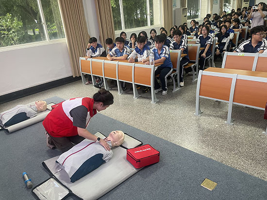 為增強學生安全意識,普及急救知識,提高應對突發狀況的能力,6月9日下午,杭州市喬司職業高級中學開展了一場以“氣道異物梗阻心肺復蘇(CPR)+AED使用”為主題的應急救護知識講座,浙江省紅十字二級講師、國家應急救援員、杭州龍晟應急救援服務中心師資組組長蔡海燕為該校高一、高二年級部分學生代表進行了應急救護常識指導培訓。
