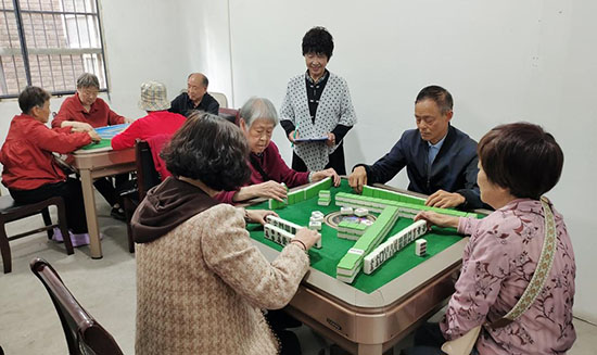 “萬(wàn)里長(zhǎng)城蓋世神,麻將桌上一笑吟”。三天時(shí)間里,一百八十位退休教職工輪番上場(chǎng)。比賽中,尊重對(duì)手,遵守規(guī)則,既沉著冷靜,又輕松愉快,“我吃!”“我碰!”吃吃碰碰,碰碰吃吃,不時(shí)聽(tīng)到“我胡了!”“我七對(duì)胡了!”“呵呵!我財(cái)頭大胡了!”你胡了我為你高興,我胡了其他人也開(kāi)心,看似是博弈,其實(shí)是娛樂(lè),個(gè)個(gè)心態(tài)良好,氣氛非常愉悅。