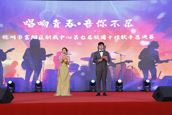為增加校園文化氣息,鼓勵學生通過音樂和歌聲張揚青春夢想,全面展示富陽區職業教育中心學生的青春風貌,校團委組織開展“唱響青春 音你不凡”校園十佳歌手比賽。經過初賽、復賽層層選拔,25組實力唱將站上閃耀舞臺,為師生們獻上了一場精彩絕倫的視聽盛宴。本次決賽特邀校內外專業音樂老師及往屆優秀選手代表組成評審團。評委們從音準節奏、演唱技巧、情感表達、舞臺臺風等多個維度對選手進行綜合評分。