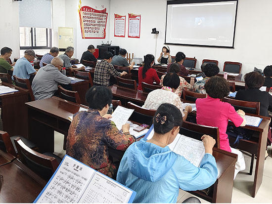 窗外陽光明媚,室內旋律鏗鏘。鄧念梅老師以專業而富有感染力的教學方式,引領學員們走進這首頌揚默默奉獻精神的時代贊歌。她細致剖析《祖國不會忘記》的情感內核——那是對在共和國偉大事業中甘于平凡、堅守崗位、無私奉獻的萬千普通建設者最崇高的禮贊。教學過程中,鄧老師不僅耐心指導學員們掌握歌曲的音準、節奏與氣息運用,更著重引導大家理解歌詞中蘊含的磅礴力量與深沉情感,體會“山知道我,江河知道我,祖國不會忘記我”的莊嚴承諾與無上榮光。學員們全情投入,反復練習,白發蒼蒼卻目光如炬,歌聲中飽含著歷經歲月洗禮后對祖國更深沉的愛與自豪。三十七顆赤誠之心匯聚的聲浪,在社區教室中激蕩回旋,那份歷經滄桑仍熾熱如初的愛國情愫,令人動容。