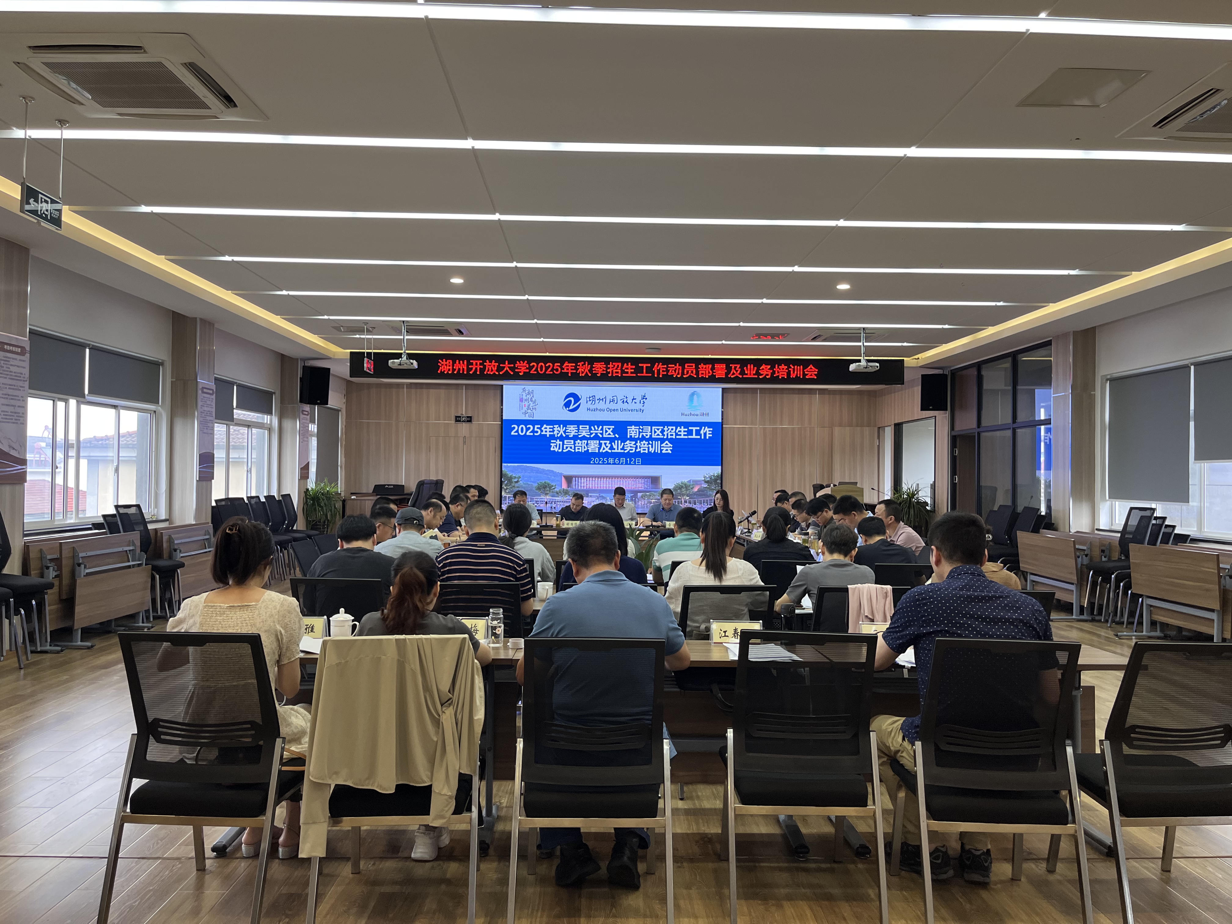 2025 年 6 月 12 日,一場關乎湖州開放教育發展新征程的重要會議 —— 湖州開放大學 2025 年秋季招生工作動員部署及業務培訓會,在和孚成校拉開帷幕。湖州開放大學吳小健副校長、繼續教育學院雷術海院長,吳興區教育局職成教中心主任胡國強、南潯區社區教育學院副院長李小鳳,以及市本級 18 所成校校長與招生負責人等 41 位教育工作者齊聚一堂,共商招生發展大計。?
