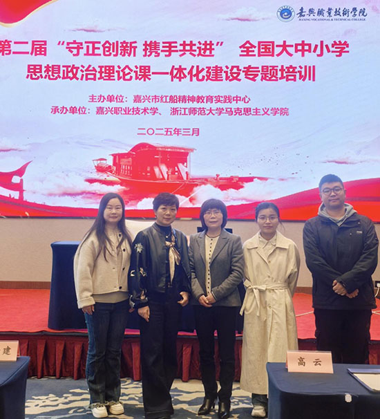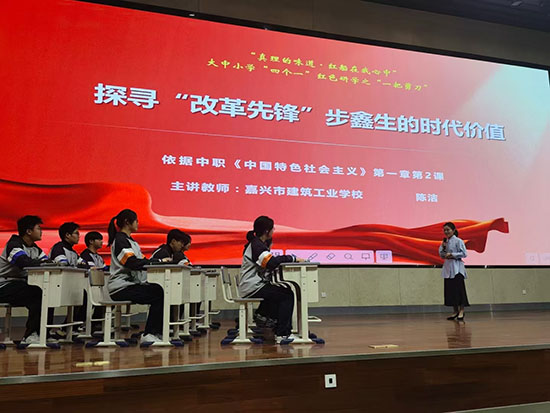 在由學校黨建共同體合作單位——嘉興職業技術學院馬克思主義學院組織的“真理的味道”大中小學思政課一體化實踐研學活動中,黨員教師陳潔老師受邀參加大中小五個學段的教學展示,以“探尋改革先鋒步鑫生的時代價值”為課題,將AI技術與思政教育深度融合。學生們通過數字化手段創作作品,生動講述步鑫生的改革創新故事,深刻領悟時代精神與使命擔當。
