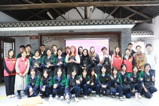 支部黨員陳嬌老師在一帶一路中外跨文化交流與體驗研學活動中擔任志愿者,引導來自南洋職業技術學院的多名國際留學生參觀古建園,為他們講述古建歷史發展,指導留學生體驗中國傳統木作工藝,體會古建文化魅力,為弘揚中華優秀傳統文化、推進國際交流合作辦學貢獻力量。