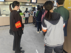 黨員教師主動認領食堂奉獻崗,在保障師生用餐服務中踐行初心使命。每日就餐高峰時段,黨員教師化身“志愿服務員”,協助維持用餐秩序,引導文明用餐,勸導節約糧食,用行動維護食堂就餐環境整潔有序。黨員教師既延伸了育人陣地,也在志愿服務中傳遞責任擔當,讓食堂窗口成為黨建引領服務的生動課堂,切實將黨員先鋒作用融入校園生活日常。