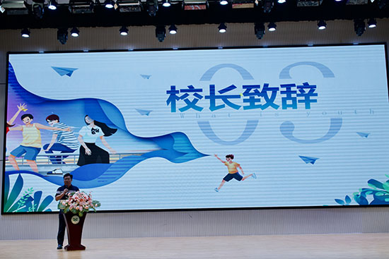 校長呂富登臺致辭。他回顧了學校發展歷程和同學們在校的點滴成長,講述了優秀學長學姐的求學故事,鼓勵大家以成年為新起點,樹立遠大理想,追隨榜樣腳步,在知識的道路上砥礪前行,用實際行動書寫屬于自己的青春故事。