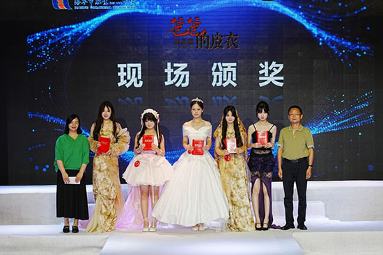 學生的成長離不開老師三年來的悉心指導,現場展示了兩組教師作品《共生》和《漓云》。產教融合是職業學校辦學的重要途徑,本次活動得到了浙江太球服飾有限公司的大力支持,他們也給學生帶來了的兩個系列作品,讓學生開闊了眼界,相信未來,海寧職高的學子定能不斷傳承優秀,接力夢想。
