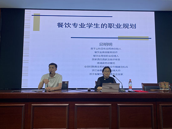 活動周創(chuàng)新引入“家長導師”資源。莫干山秋田布谷民宿創(chuàng)始人、德清縣勞動模范、浙江省餐飲行業(yè)優(yōu)秀女企業(yè)家邱明明女士,為酒店、烹飪、園林專業(yè)的學生帶來了融合行業(yè)前沿與匠心精神的生動一課。醫(yī)生家長則走進課堂,講授夏季傳染病預防知識,實現(xiàn)專業(yè)醫(yī)學與校園健康教育的完美融合。獄警家長為學生開展法律講座,了解法律常識、校園欺凌以及未成年人犯罪現(xiàn)狀。行業(yè)精英與專業(yè)人才走進校園,為職教學子打開了更廣闊的視野。