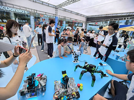 智能機(jī)器人展示區(qū):形態(tài)各異的智能機(jī)器人成為焦點(diǎn)。搭載高清廣角攝像頭的人形機(jī)器人,具備人臉識(shí)別、顏色追蹤等智能功能,并可完成踢球、巡線等趣味動(dòng)作。參觀者通過(guò)動(dòng)手互動(dòng),親身感受科技魅力,深度了解學(xué)校AI教學(xué)成果與人才培養(yǎng)。
