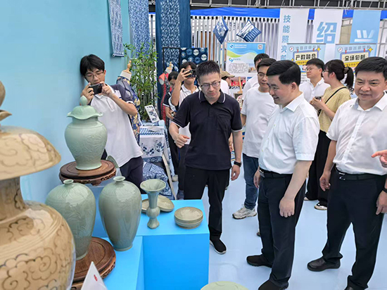 展會(huì)當(dāng)天,省人力社保廳黨組書記、廳長(zhǎng)吳偉斌,廳黨組副書記、副廳長(zhǎng)張旭明等領(lǐng)導(dǎo)蒞臨現(xiàn)場(chǎng),深入各市級(jí)展區(qū)考察。在上虞區(qū)技工學(xué)校展位前,省市領(lǐng)導(dǎo)饒有興致地駐足,詳細(xì)聽(tīng)取了學(xué)校參展作品的介紹。吳偉斌廳長(zhǎng)對(duì)學(xué)校將人工智能融入技能教學(xué)的實(shí)踐模式表示高度贊賞,更對(duì)傳統(tǒng)與現(xiàn)代創(chuàng)意兼具的越窯青瓷作品贊嘆不已,充分肯定了學(xué)校專業(yè)建設(shè)方面取得的成效。他鼓勵(lì)學(xué)校繼續(xù)發(fā)揮優(yōu)勢(shì),深化產(chǎn)教融合,為社會(huì)培養(yǎng)更多高素質(zhì)技能人才。