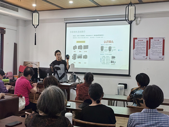 課堂上,章老師從最基礎(chǔ)的手機(jī)相機(jī)穩(wěn)定技巧入手,細(xì)致講解如何巧妙捕捉自然光線、運用構(gòu)圖法則提升畫面美感,更延伸至后期剪輯技術(shù),讓影像敘事更富感染力。章老師強(qiáng)調(diào),攝影不僅是生活瞬間的忠實記錄,更是內(nèi)心情感與獨特視角的自我表達(dá)。學(xué)員們興致盎然,紛紛拿出手機(jī)跟隨講解進(jìn)行實踐操作,現(xiàn)場快門聲與探討聲交織,學(xué)習(xí)氛圍濃厚熱烈。