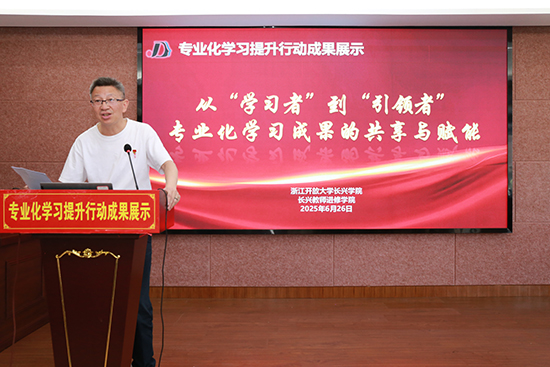 為深入踐行學院“思不足,求奮進,做更好的自己”的發展理念,推動教師實現從專業化學習向專業化發展的跨越,促進骨干教師經驗共享與成果賦能,6 月 26 日上午,長興開大教師進修學院精心組織了 2024 學年“專業化學習提升行動”成果展評活動,學院副書記孫甫永主持本次活動。
