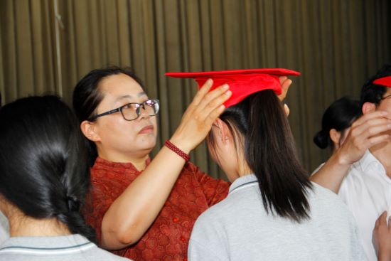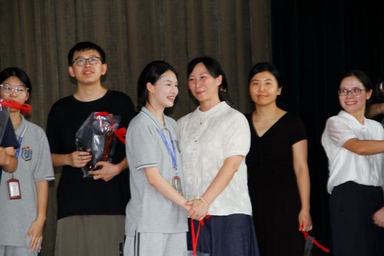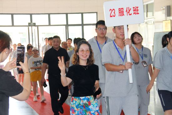 在主持人熱情洋溢的開場白中,成人禮正式拉開帷幕。校黨委書記劉忠明莊嚴宣布:“杭州市富陽區職業教育中心2023級學生成人儀式正式開始!” 這一刻,標志著屬于2023級學子的神圣時刻到來!莊嚴優美的《圣潔的時刻》旋律奏響!全體高二學子,意氣風發,邁著堅定的步伐,昂首闊步,跨越象征責任與擔當的成人門!儀式進入核心環節——冠禮儀式。校領導及各專業部領導依次為各班學生代表佩戴象征責任與使命的成人帽,頒發賦予公民權利的《中華人民共和國憲法》讀本,以及代表學校對學生專業素養與職業精神高度認可的“第一技能”證書。站在成人的門檻上,23美文王懷彬同學代表全體同學訴說了激動的心聲與成長的感悟。隨后,在23服化華璐陽同學的帶領下,全體同學面對國旗,高舉右拳,以青春的名義許下莊嚴的成人誓言。接著,學生代表們向自己的父母敬獻感恩茶。謝師恩:效仿古禮,同學們以“束脩之禮”向敬愛的班主任老師們表達最誠摯的感恩。各專業部學生代表上臺,向班主任老師行禮獻禮。班主任代表、23醫1班史英娜老師為同學們送上了飽含深情的成人寄語。接著,各班學生代表將班旗鄭重交還給學校珍藏。敬愛的夏峰巍校長為全體同學送上了成人禮的祝福與殷切期望,語重心長的囑托必將化為同學們前行的不竭動力。