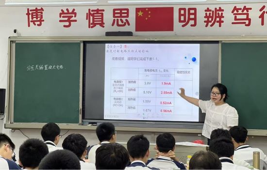 朱彬如老師在《分壓式偏置放大電路》一課中,通過理論推導(dǎo)與實物演示,生動講解分壓式偏置電路的結(jié)構(gòu)特性、靜態(tài)工作點(diǎn),結(jié)合實際電路直觀展現(xiàn)工作點(diǎn)設(shè)置,學(xué)生積極參與討論,現(xiàn)場互動氛圍熱烈。