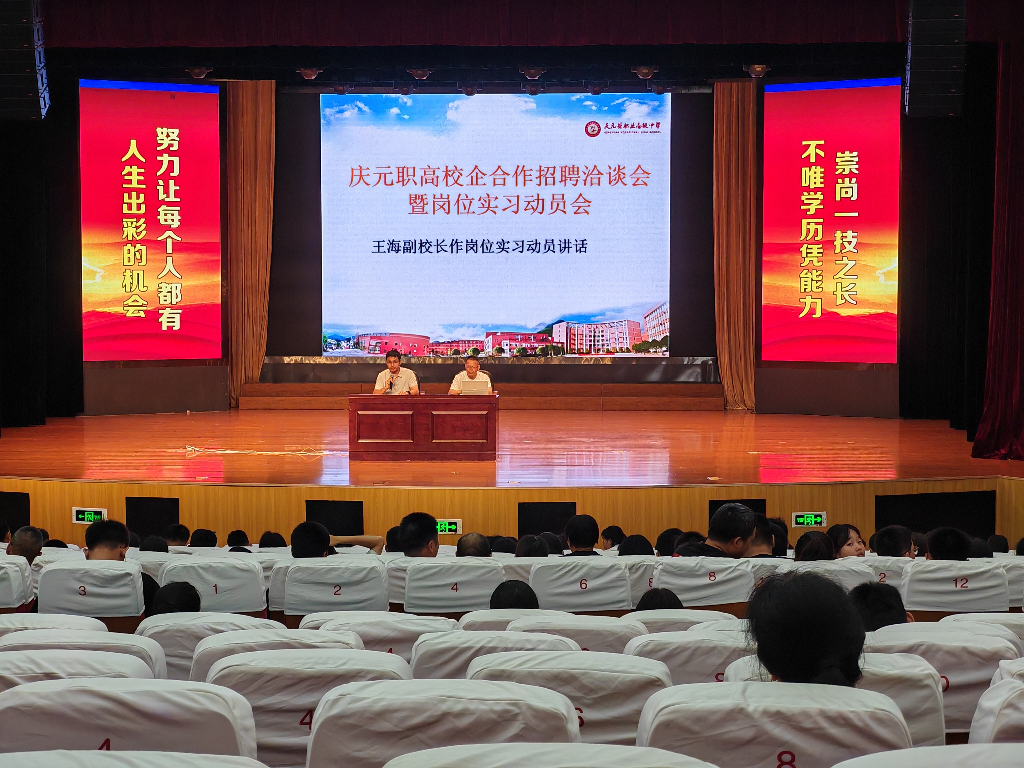 6月30日上午,慶元職高與縣人力資源和社會保障局在學校報告廳、中心廣場合作舉辦2025年慶元縣技能人才校企合作洽談會。