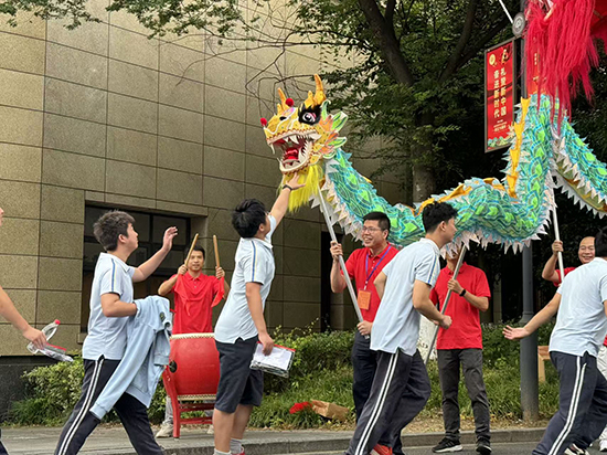 目睹校領導親自舞龍擊鼓,感受著震天鼓聲和師長的殷切目光,全體高三學子熱血沸騰,群情激昂! 一張張青春的臉龐上寫滿了自信與堅定,眼中閃爍著勇往直前的光芒。這份獨特的送考儀式,無疑為學子們注入了強大的精神動力!