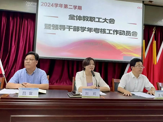 7月4日上午,我校召開2024學年全體教職工大會暨領導干部學年考核工作動員會。湖州市教育局黨委委員、基教處處長劉莉等考核組成員、校領導班子及全體教職工參會。