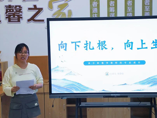 朱靜佳老師以自身教壇新秀備賽經(jīng)歷為例,鼓勵新教師要向上生長,向下扎根,用實際行動詮釋專業(yè)成長的路徑。劉曉嵐老師通過回溯自己的教師成長印記,向新教師傳遞信念:要站穩(wěn)講臺,擁抱挑戰(zhàn),突破瓶頸,步履不停,拾級而上。