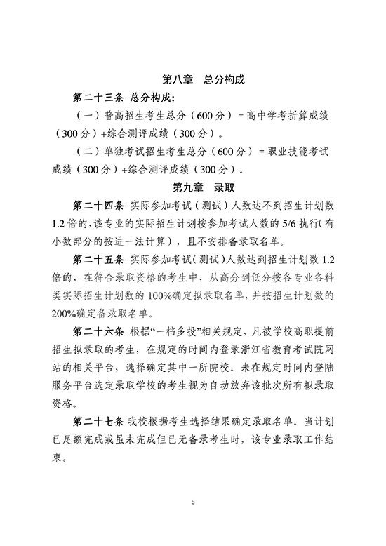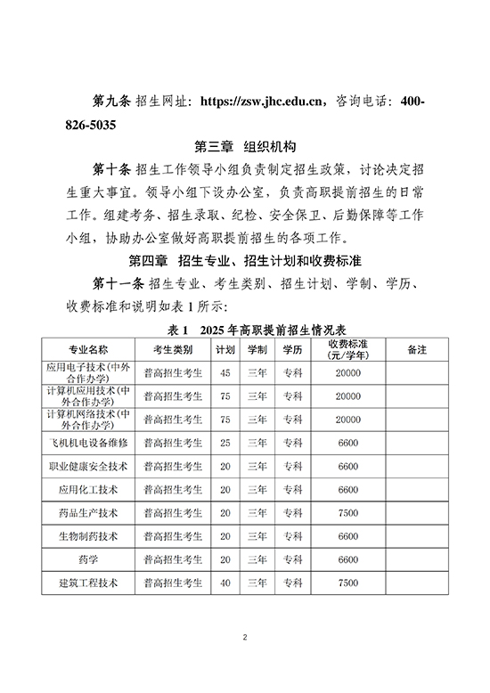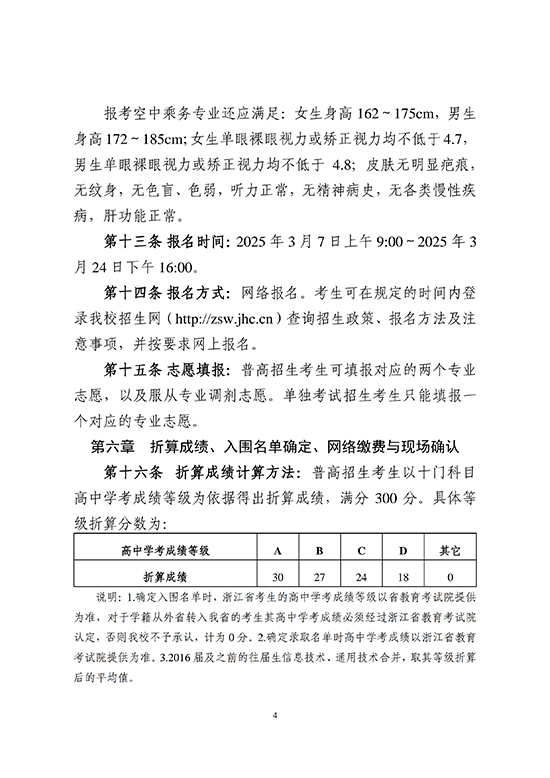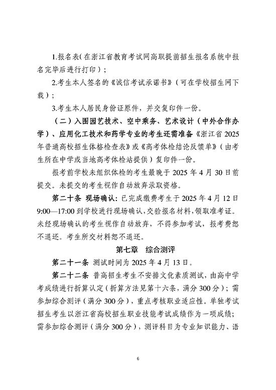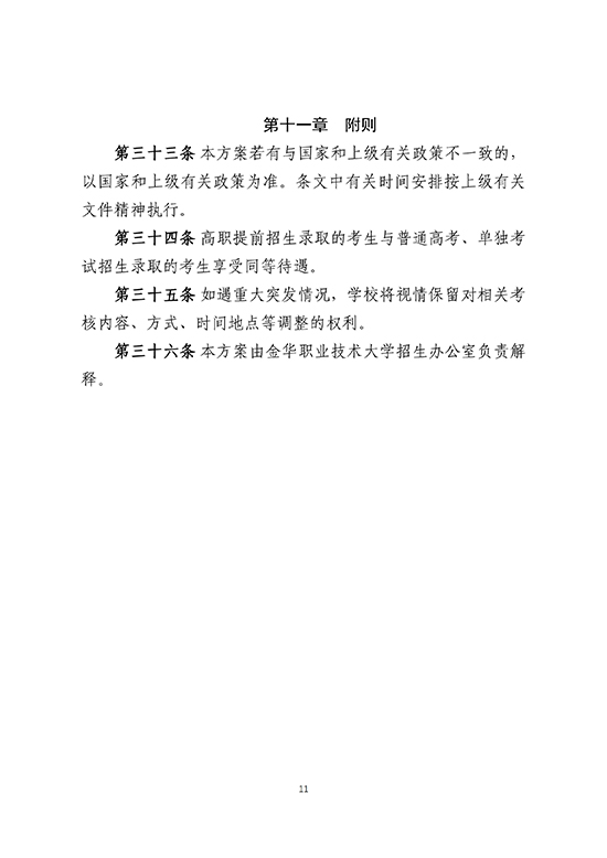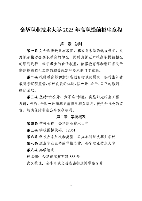 金華職業技術大學2025年高職提前招生章程