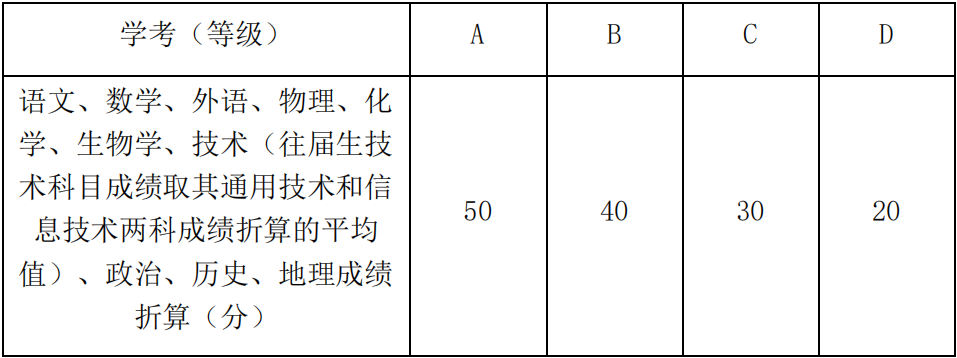2.綜合測評各項成績均相同時,依次按學(xué)考語文、數(shù)學(xué)、外語等級折算成績、體能測試分、綜合面試分、物理、化學(xué)、生物學(xué)、技術(shù)、政治、歷史、地理等級折算成績和中學(xué)階段綜合素質(zhì)評價排序確定。