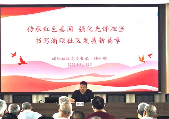 社區黨委書記韓燦明首先登臺,主講《傳承紅色基因,強化先鋒擔當,書寫浦聯社區發展新篇章》。韓燦明書記立足街道黨工委書記夏劍兵“七一”講話精神,緊密圍繞“七有建設”目標,從三方面為黨員們注入精神力量:一是深入闡釋賡續紅色血脈的永恒價值,強調理想信念是社區發展的根基;二是聚焦“七有建設”藍圖,號召全體黨員在對標先進中尋求攻堅突破的路徑;三是強調淬煉清廉黨性,筑牢防腐拒變的堤壩。韓書記發出明確號召,激勵全體黨員勇擔“文明先鋒”與“治理先鋒”雙重角色,以實干精神激活社區發展的澎湃引擎。