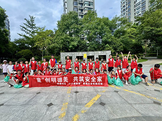 7月22日,杭州市濱江區浦沿街道明德社區“‘童’創明德美 共筑安全家——‘小小浦管家’”暑期社會實踐活動火熱啟動。四十余名社區少年兒童主動化身家園“小管家”,以親身實踐為社區安全與清潔注入鮮活的“童”力量。