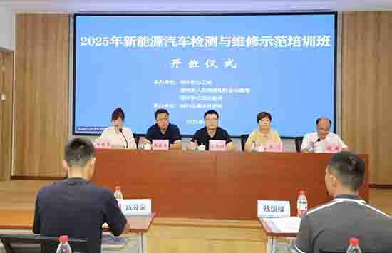 為積極響應(yīng)國家“雙碳”戰(zhàn)略目標(biāo),加快新能源汽車維修技術(shù)人才培養(yǎng),推動全市汽車維修行業(yè)綠色升級,由湖州市人力資源和社會保障局、湖州市總工會、湖州市交通運輸局聯(lián)合主辦,湖州交通技師學(xué)院承辦的新能源汽車檢測與維修示范培訓(xùn)班于8月3日隆重開班。湖州市人社局職建處處長蔣柏焰,湖州市總工會勞動部部長周玥,湖州市公路與運輸管理中心副主任周新軍,湖州交通技師學(xué)院黨委書記胡巍、副院長白新雪出席開班儀式,來自全市各區(qū)縣50名從事新能源汽車檢測與維修的一線從業(yè)人員參加培訓(xùn)。據(jù)悉,這也是全省首個新能源汽車檢測與維修示范培訓(xùn)班。