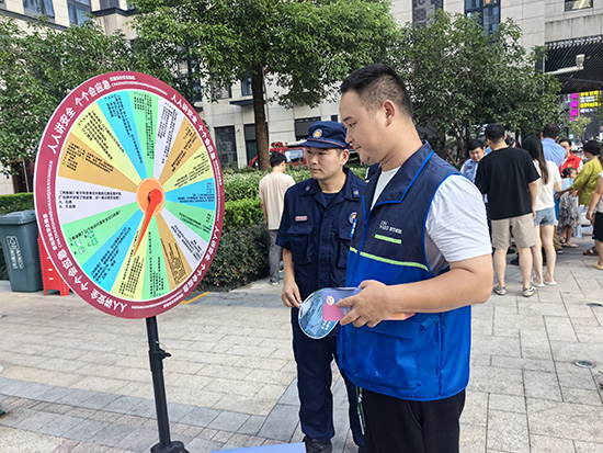 8月9日傍晚,杭州市濱江區浦沿街道巖大房社區云杉郡小區噴泉廣場人聲鼎沸。外賣騎手小王剛結束配送,便匆匆趕來。在“反詐套圈”游戲攤位前,他與小區老住戶李阿姨相鄰而站,一邊瞄準目標,一邊聽著街道反詐中心、浦沿派出所工作人員講解套中物品上的防詐知識——“阿姨您看,‘刷單返利是詐騙’,這說的就是我們常遇到的陷阱啊!”小王笑著分享自己的經歷。歡聲笑語中,一道無形的鄰里之橋悄然架起。