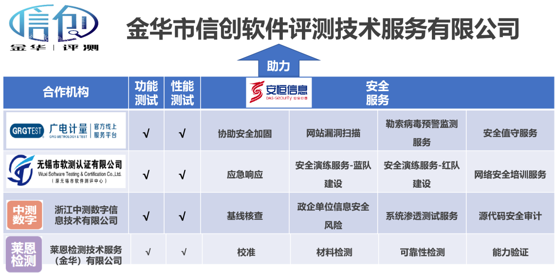 公司借助學校組建的軟件評測實驗室團隊,申請獲得中國合格評定國家認可委員會(CNAS軟件測試資質證書),具備提供軟件評測資質資格。同時公司和廣電計量、安恒信息等企業簽訂合作協議,補齊公司評測資質,具備對外提供軟件功能、性能和安全測試。