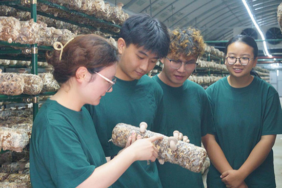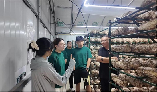 椴木生金蕊,慶元菇事興。7月17日,團隊成員走訪設點于慶元的浙江鼎洲生物技術(shù)有限公司。在工作人員帶領(lǐng)參觀菌棒自動化生產(chǎn)線和數(shù)字化溫控出菇棚,團隊在“菇鄉(xiāng)共富工坊”了解到“光菌一體”集成式菇房的建立突破傳統(tǒng)菌類培育的時空限制,通過變溫、制冷、通風等智能中控系統(tǒng)靶向調(diào)節(jié)香菇生長環(huán)境。隨后,隊員前往慶元菌博生物科技有限公司進行調(diào)研。公司負責人楊葉松董事長帶我們觀摩了“智能化熱泵節(jié)能集中式烘干系統(tǒng)+2.2萬立方米干制菌菇儲存冷庫”,最大程度上保留了慶元香菇初始色澤與香味。創(chuàng)新建立的“公司+農(nóng)戶”模式,點燃當?shù)氐?ldquo;銀發(fā)經(jīng)濟”。