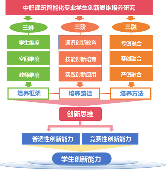 建筑智能專業(yè)組注重學(xué)生創(chuàng)新思維培養(yǎng),通過(guò)搭建“1+1+N”多元?jiǎng)?chuàng)新平臺(tái),為學(xué)生提供創(chuàng)新項(xiàng)目孵化的空間、技術(shù)支持和實(shí)踐機(jī)會(huì);通過(guò)構(gòu)建“通識(shí)創(chuàng)新教育、技能創(chuàng)新培育、實(shí)踐創(chuàng)新應(yīng)用”三階培養(yǎng),實(shí)現(xiàn)從“創(chuàng)新課程”向“課程創(chuàng)新”轉(zhuǎn)變,進(jìn)而實(shí)現(xiàn)學(xué)生技能“微創(chuàng)新”。